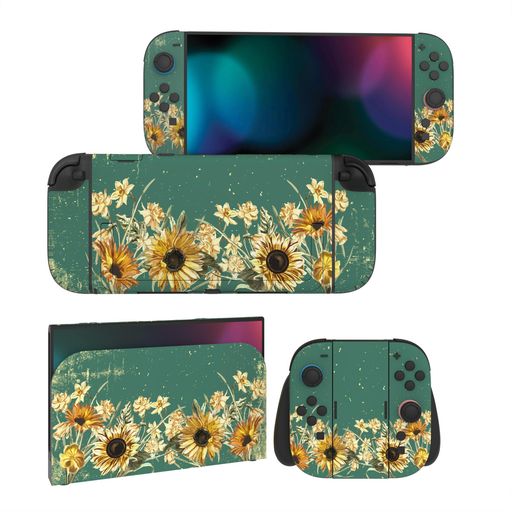 PlayVitalNintendoSwitch2(2025)本体・Joycon対応フルセット保護ステッカーシール2セットカスタマイズ用ビニールステッカードック&グリップスシール付き【向日葵】