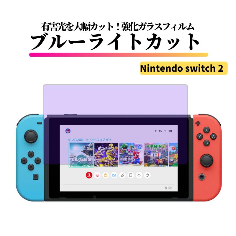 Nintendo Switch 2 ブルーライトカット ガラスフィルム 強化ガラス フィルム 保護フィルム 光沢 全面保護 硬度 9H 飛散防止 任天堂 Switch 任天堂スイッチ Switch2 レビュー
